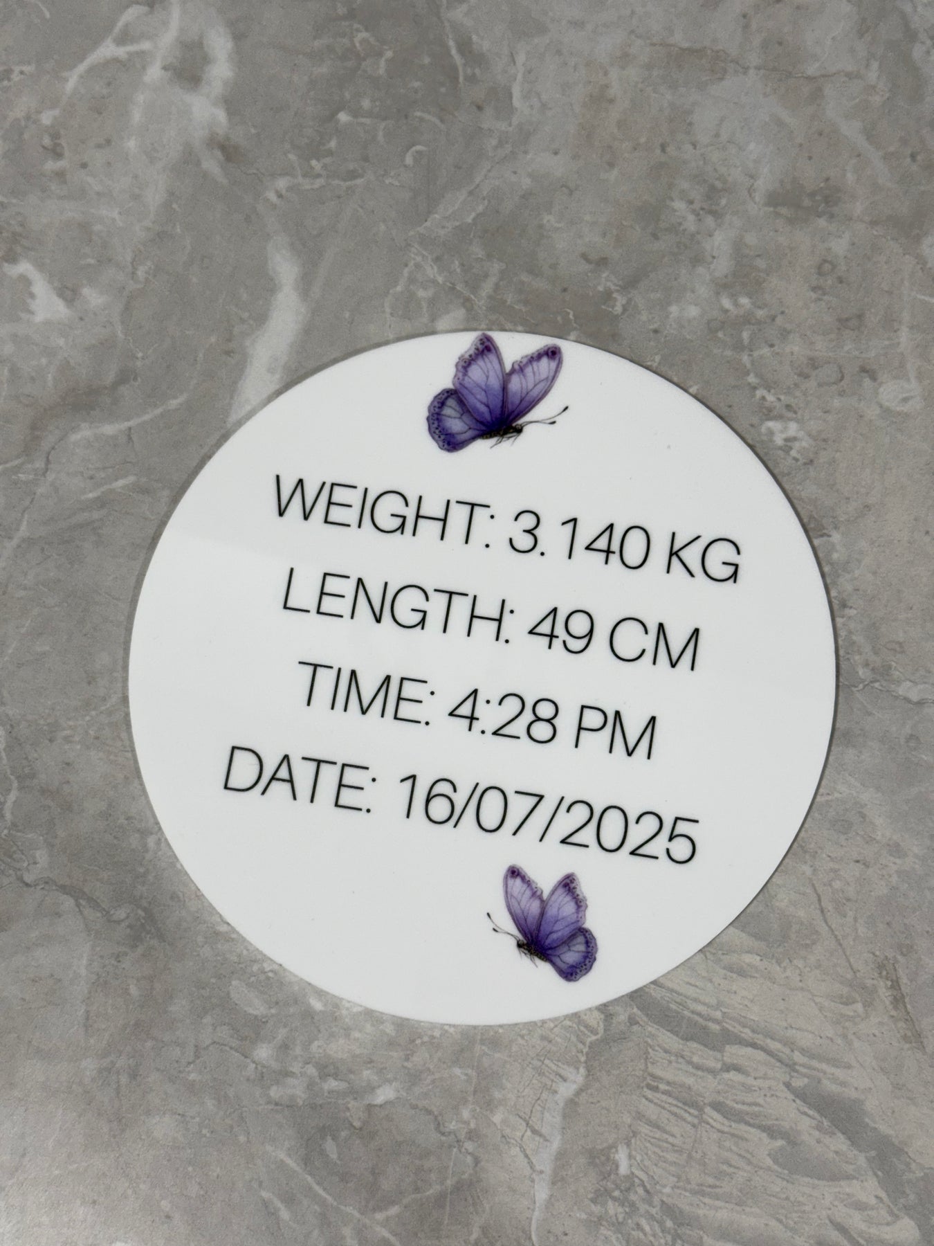 Celebrate your baby’s arrival with our beautifully crafted acrylic birth announcement plaque — a timeless keepsake made to cherish forever. Featuring high-quality UV printing on premium clear acrylic, this plaque is personalised with your baby’s name, birth details, and a stunning printed design.